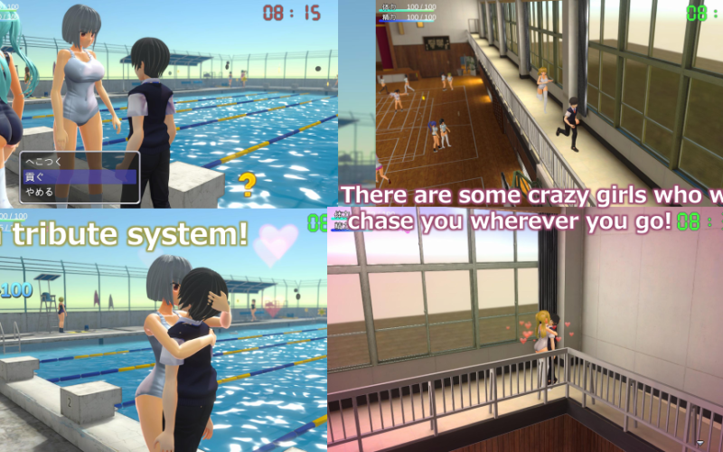 You can also "gush" at girls walking through the hallways, gym, and pool!