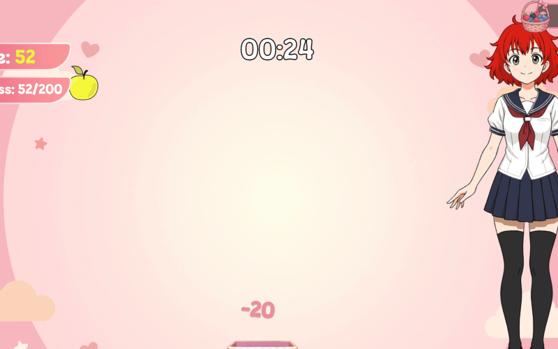 Sweet Harvest is a casual arcade game where you catch falling fruits to earn points and unlock outfits.